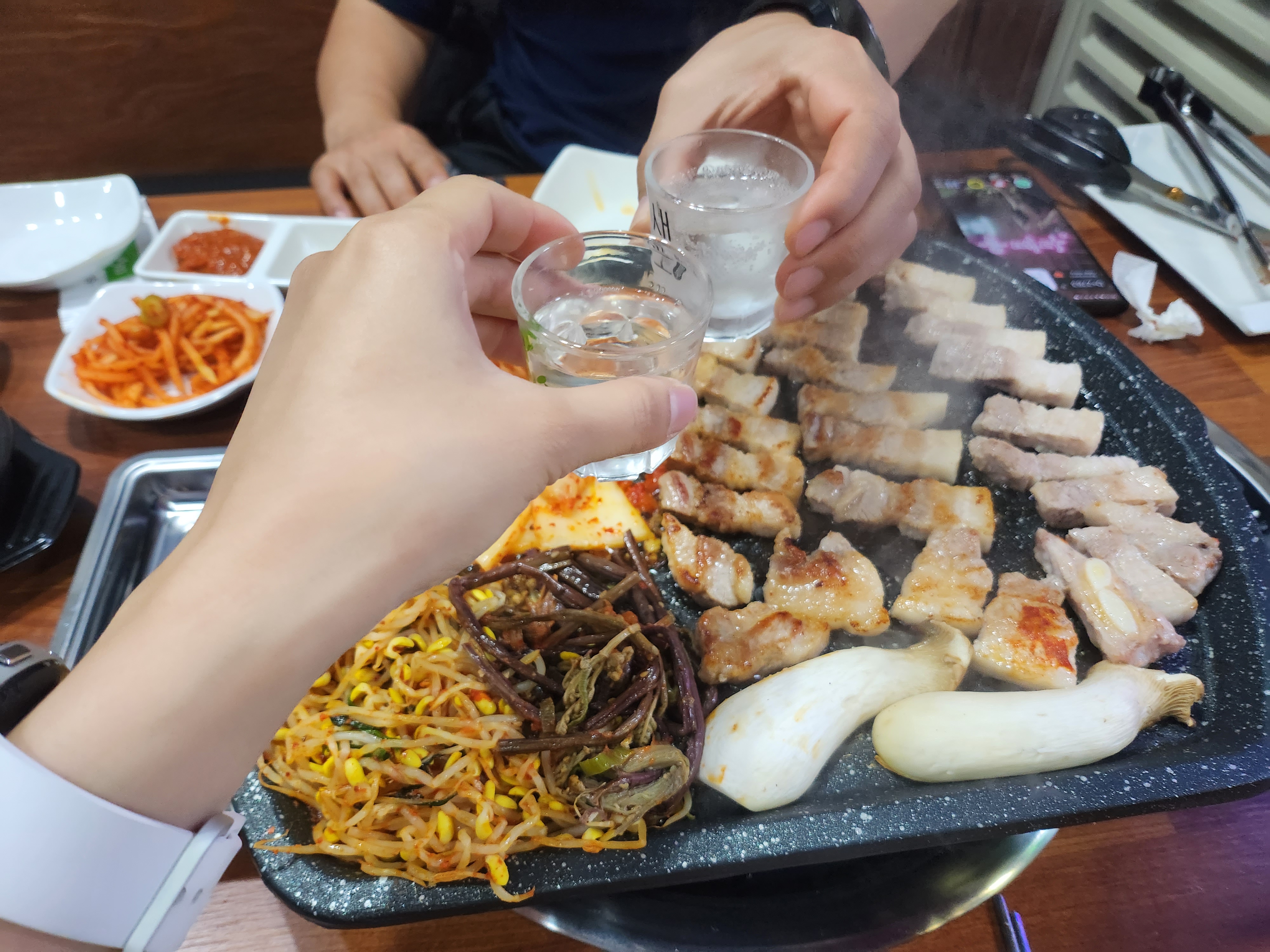 허기를 살짝 달래준 뒤 차분한 마음으로 삼겹부터 다시 시작!!ㅋㅋㅋ