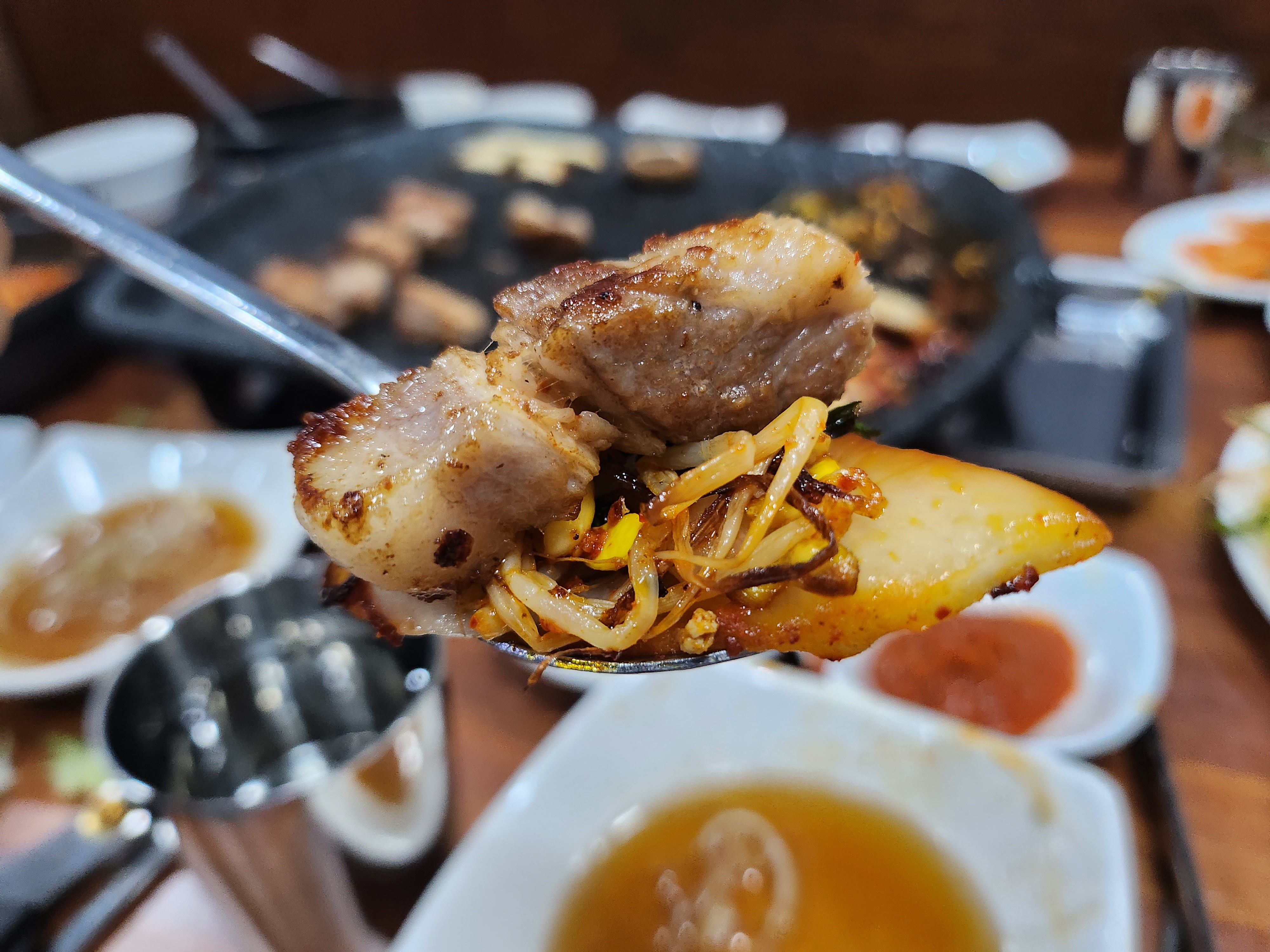 삼겹살이 너무 얇지 않고 살짝 두툼해서 너무너무 내 스타일이었다><