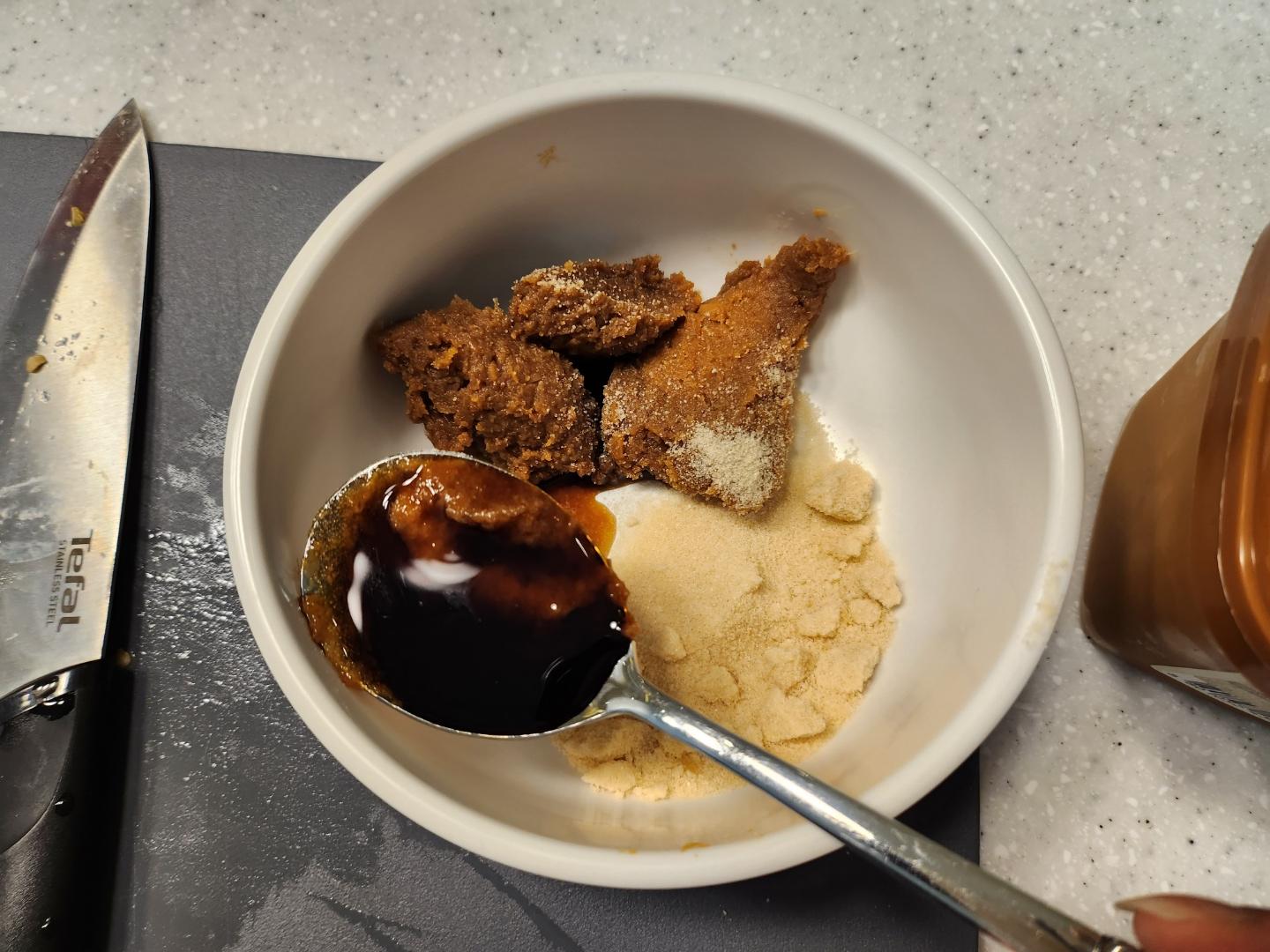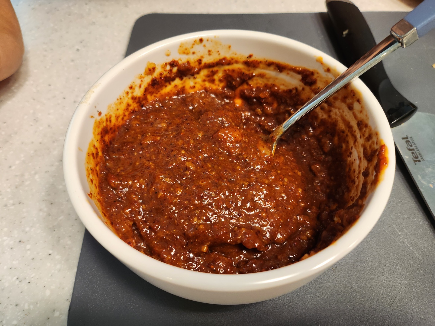 된장 2큰술, 설탕 1큰술, 진간장 2큰술, 고춧가루 5큰술, 매운고춧가루 1큰술, 참기름 2큰술, 간마늘 2큰술, 요리당 3큰술, 매실액 1큰술, 후추 3번정도 톡톡해주었다.