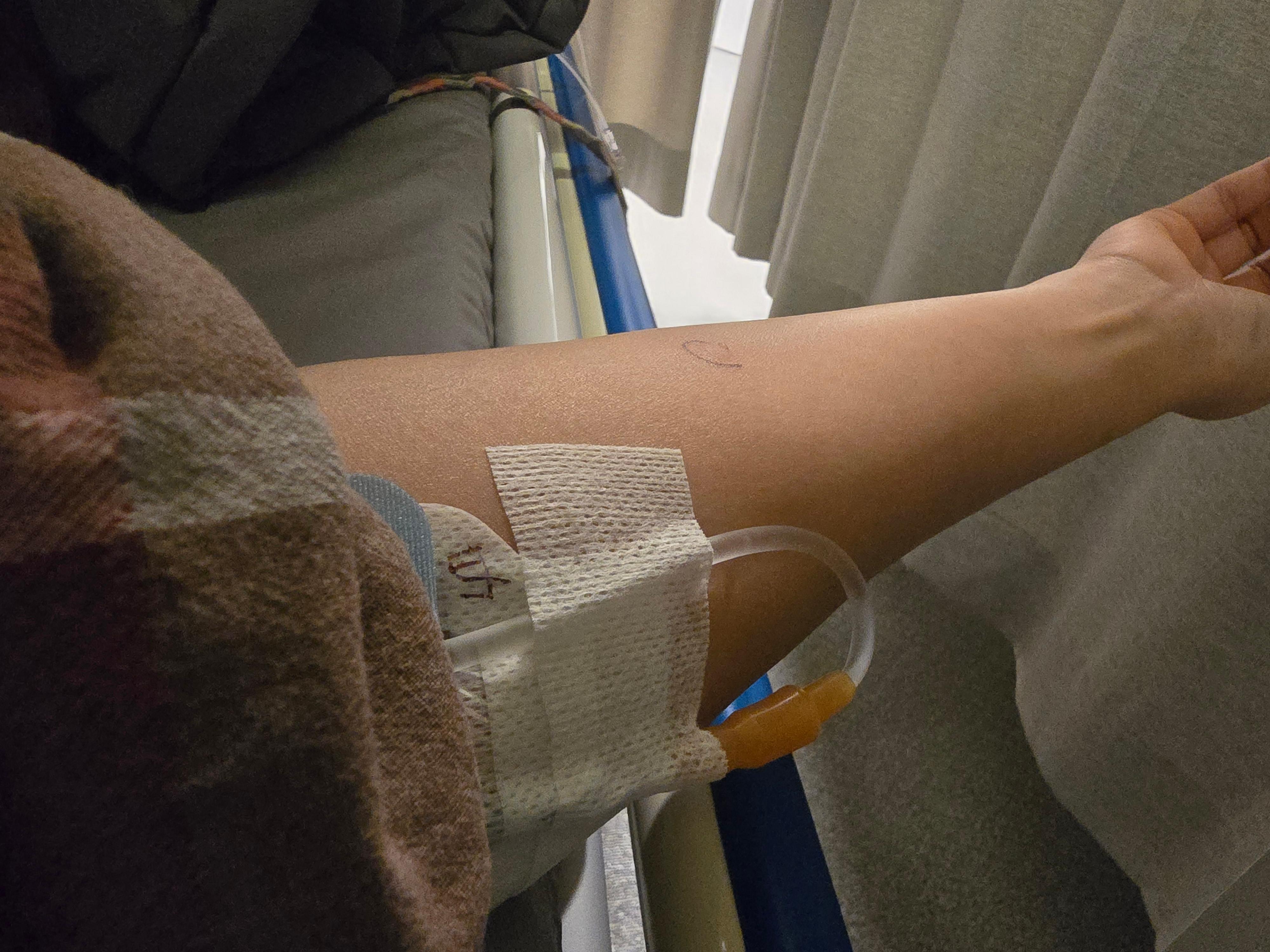 생리 13일 차 - 채취!!! 수면 마취 후 채취라서 채취 전 항생제 반응 테스트와 수액 맞으면서 대기한다.ㅎㅎ