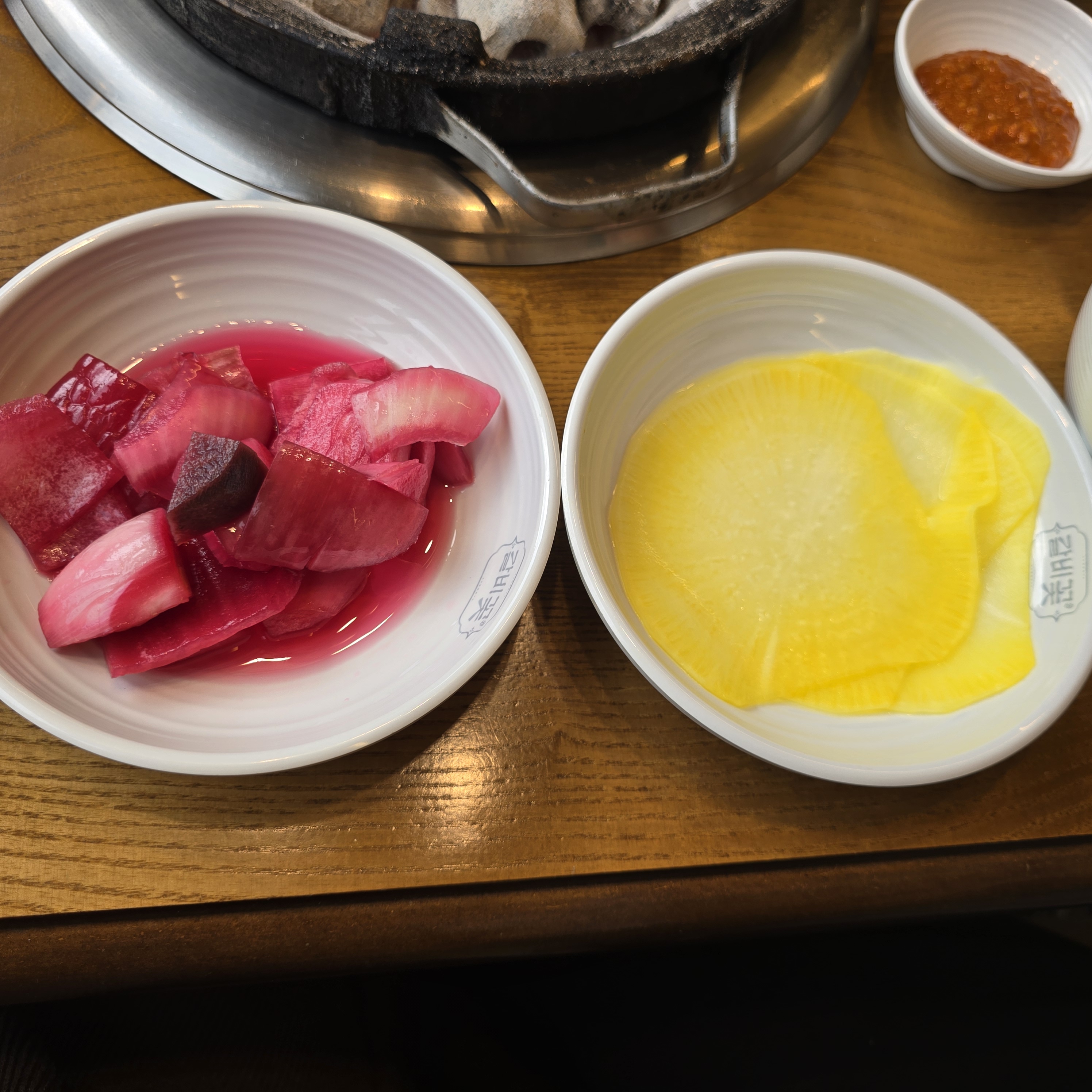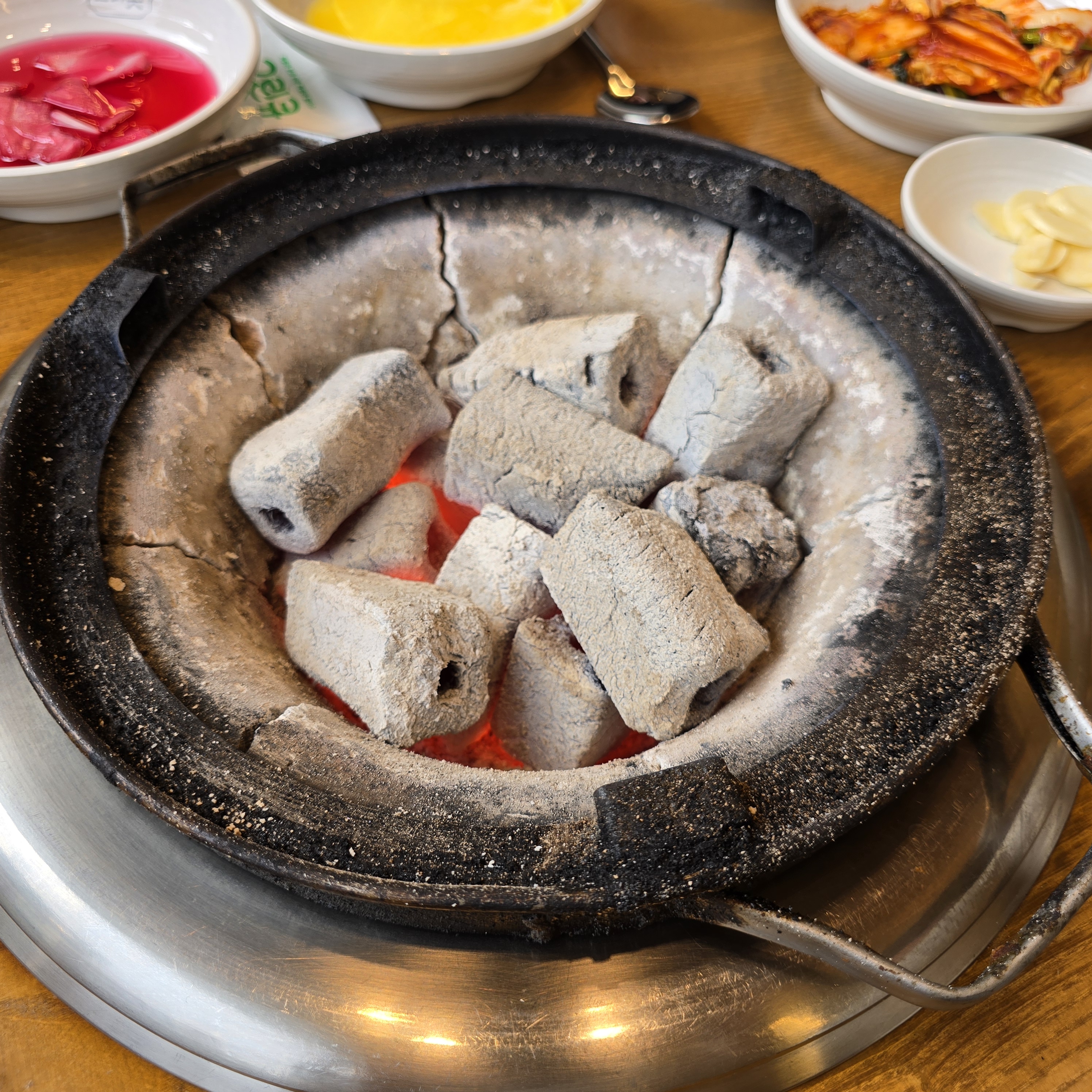 숯이 들어오고 반찬이 세팅된다!ㅎㅎ