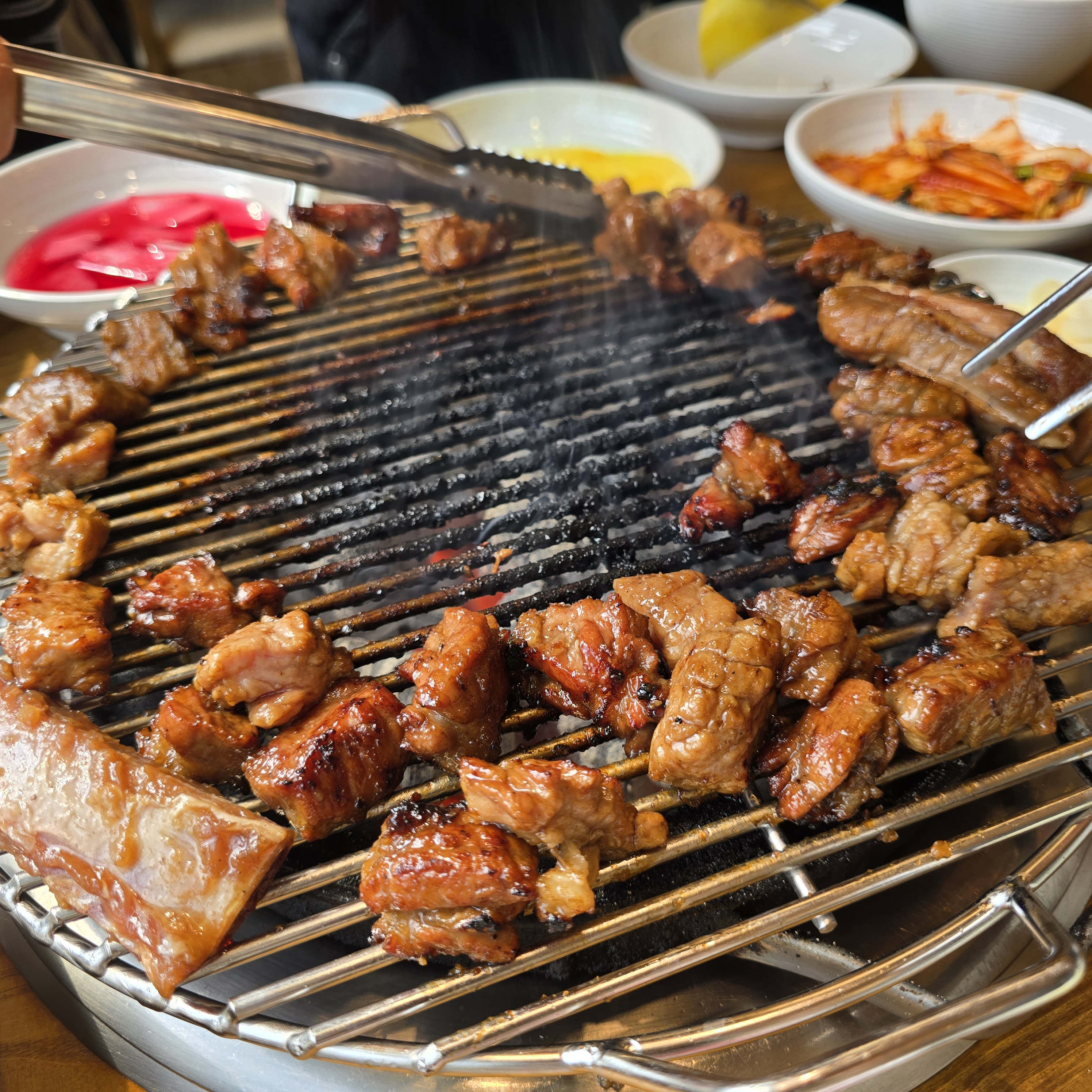 살짝 쌀쌀한 날씨였는데 숯 들어오니 바로 따듯해져서 좋았다.ㅋㅋㅋ