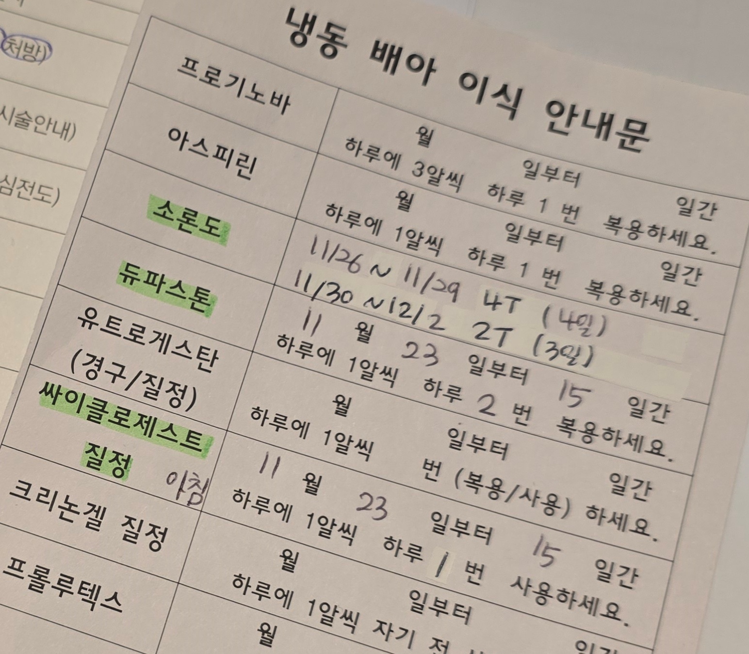 이번 동결 2차~3차는 변형자연주기로 도전했다.ㅎㅎ 2차와 3차 처방이 똑같이 진행됐기 때문에 한 번에 써본다.ㅎㅎ