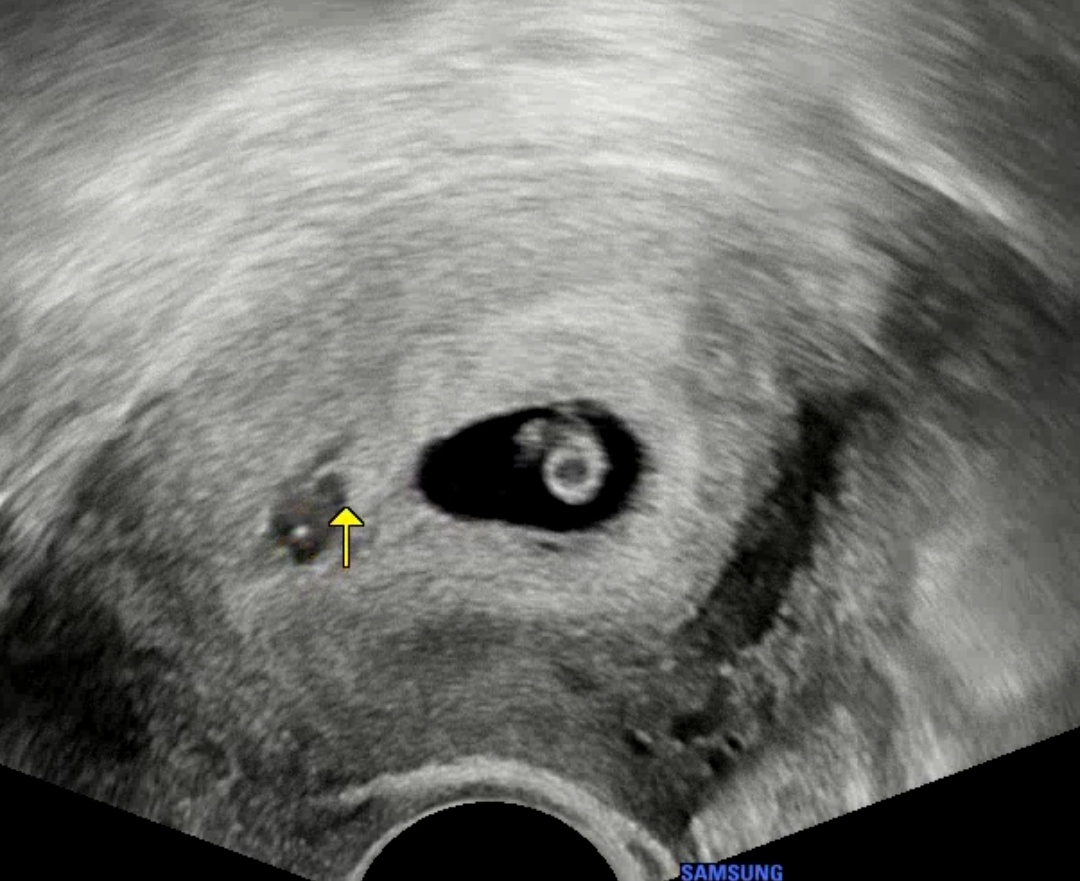 아기집 옆에 작게 피고임처럼 보이긴 하는데 흐려서 피고임이라고 확정은 지을 수 없다고 하셨다.