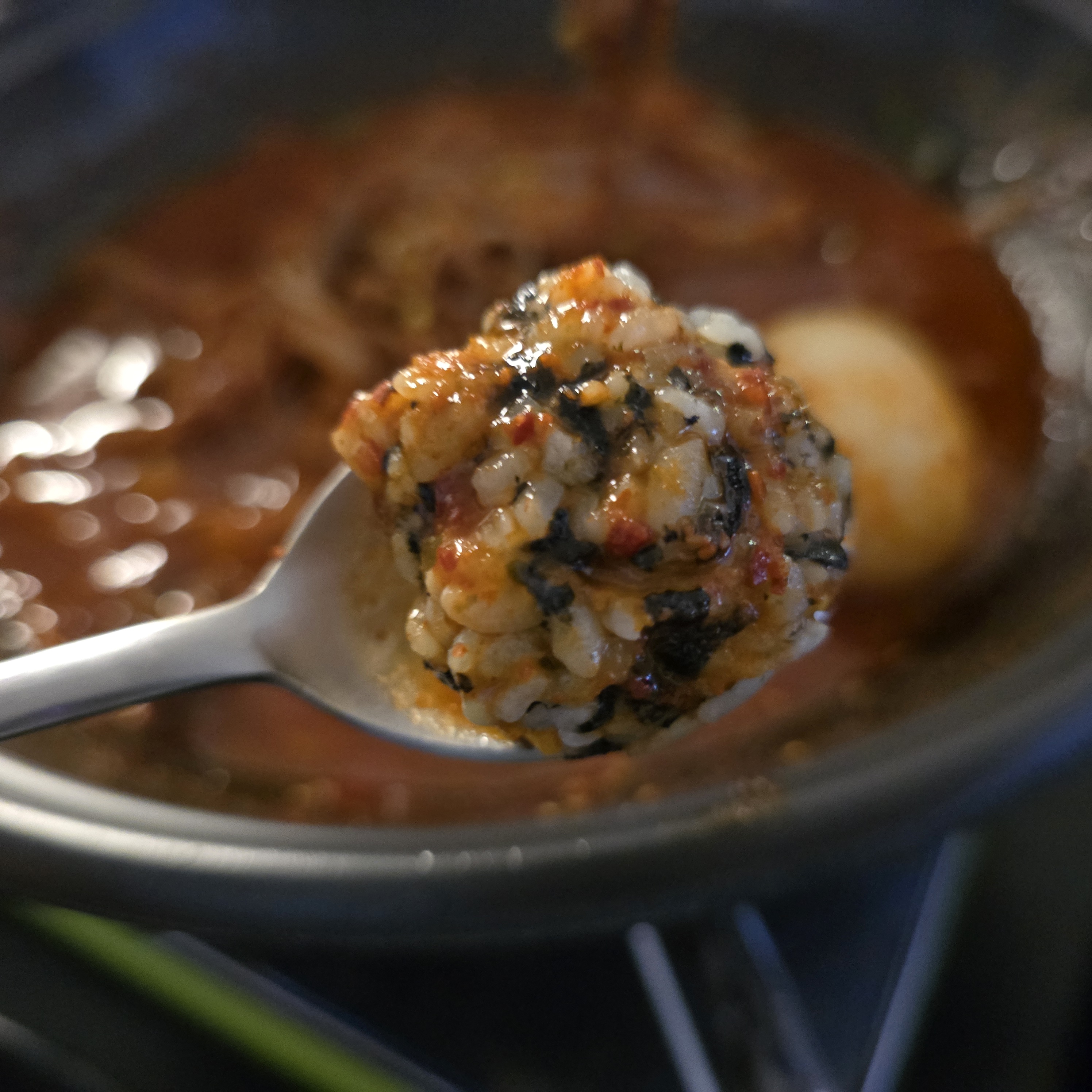 매콤 칼칼한 국물에 주먹밥도 푹 담가서 한입 먹으면