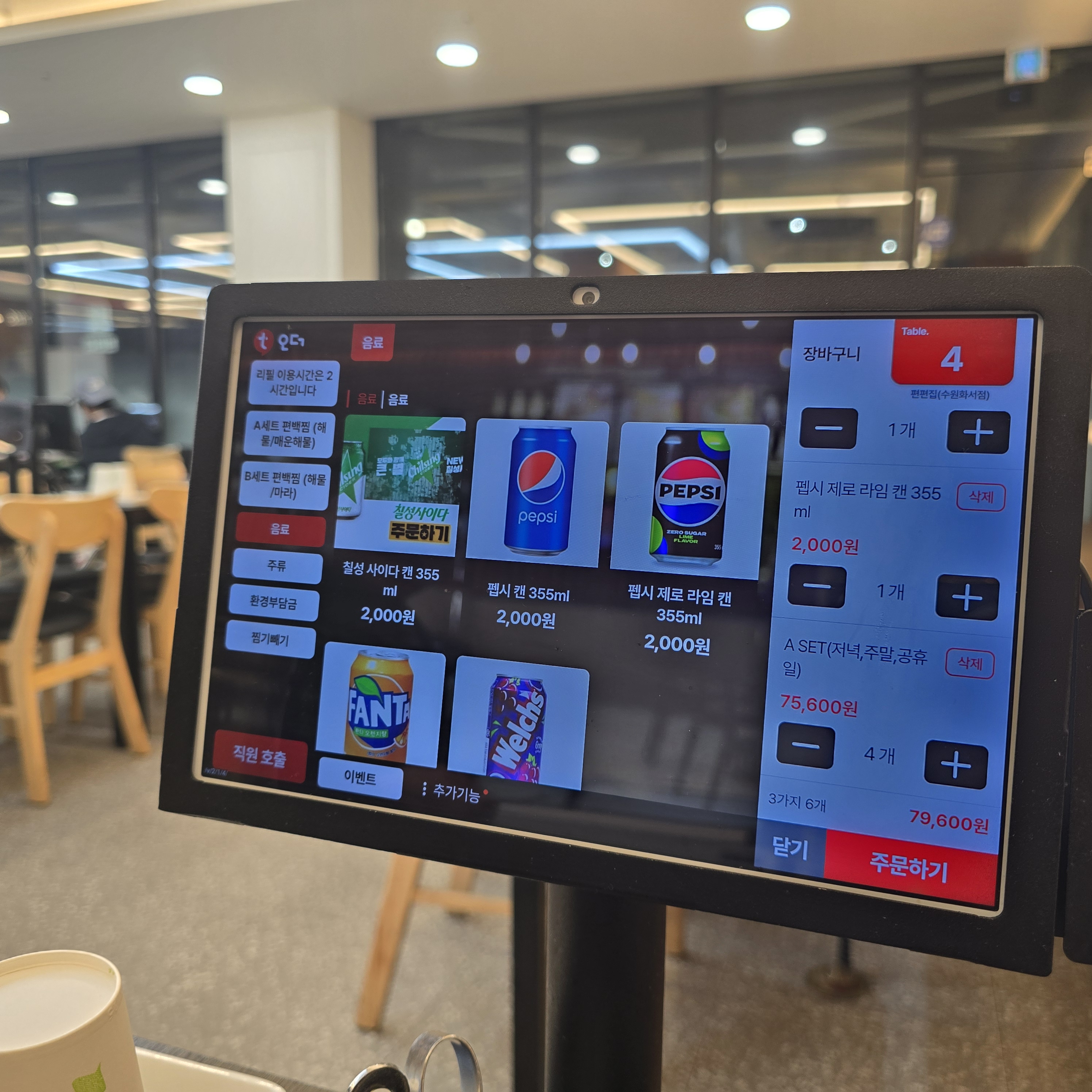 테이블마다 태블릿이 배치되어 있는데 이걸로 주문하면 된다.ㅎㅎ