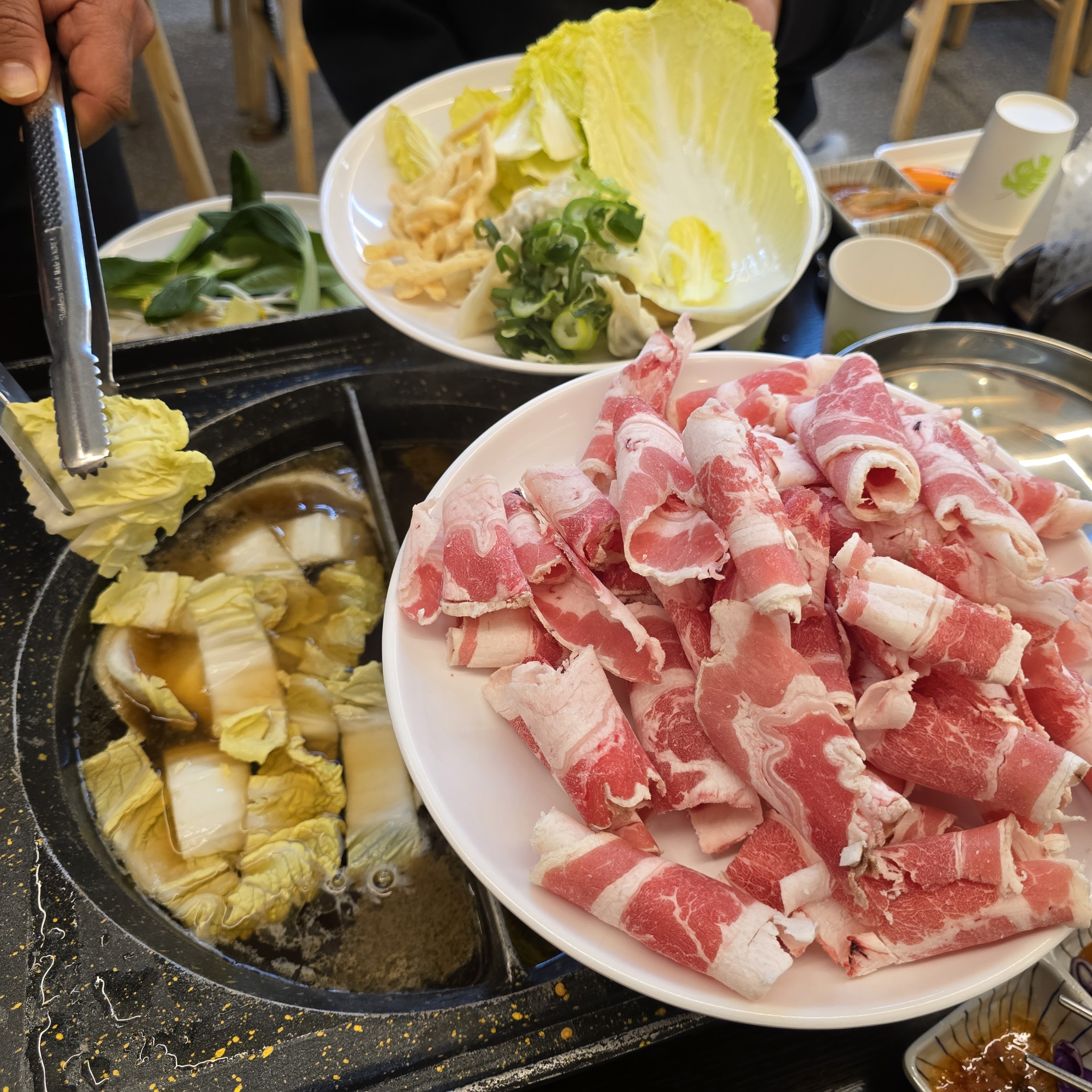 샤브샤브 재료들도 원하는 걸로 담아서 자리로 돌아간다.ㅎㅎ