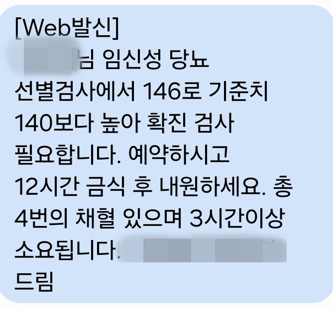 재검사는 공복에 채혈 한번 시약 마시고 1시간 뒤 채혈, 2시간 뒤 채혈이 끝이었다.