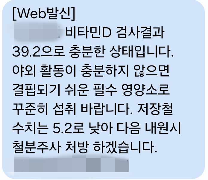 철분수치는 10.2라 하셨었는데 저장철 수치는 5.2라고 문자가 왔다.