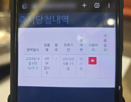 직원분도 당첨된 사람 처음 본다며 놀래셨다.ㅋㅋㅋ