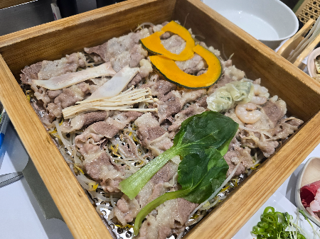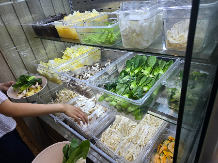 여기서 뒤로 돌면 샤브샤브에 넣어먹을 야채들이 나온다.