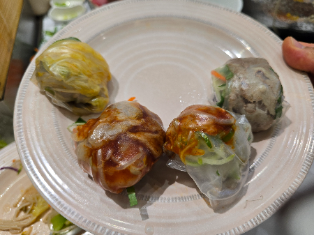 먹고 싶은 샤브샤브, 월남쌈 재료들과 소스를 담아 자리로 돌아왔다.