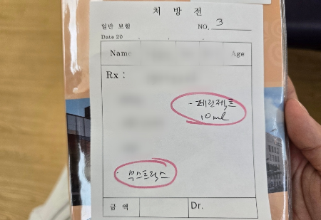지난달에 철분 수치가 낮다고 해서 보험적용하고 맞은 철분주사!!