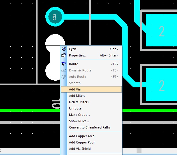 방법은 GND Pad를 하나 선택 후 F5 -> 마우스 오른쪽 Add Via를 눌러주면 GND Via가 생성된다.