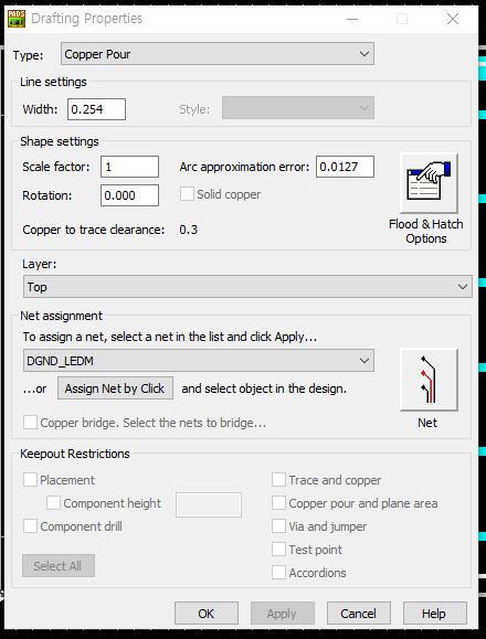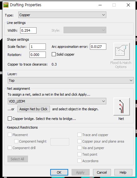 그리고 Layer와 Net assignment를 지정해 주면 된다.