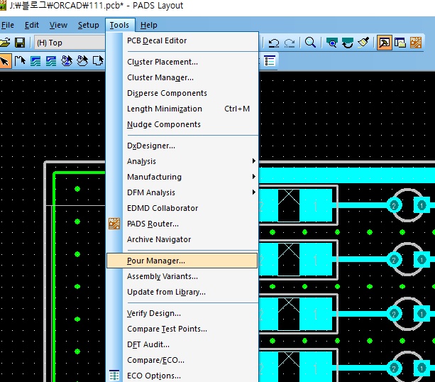 Via 배치를 완료했다면 Tools -> Pour Manager...