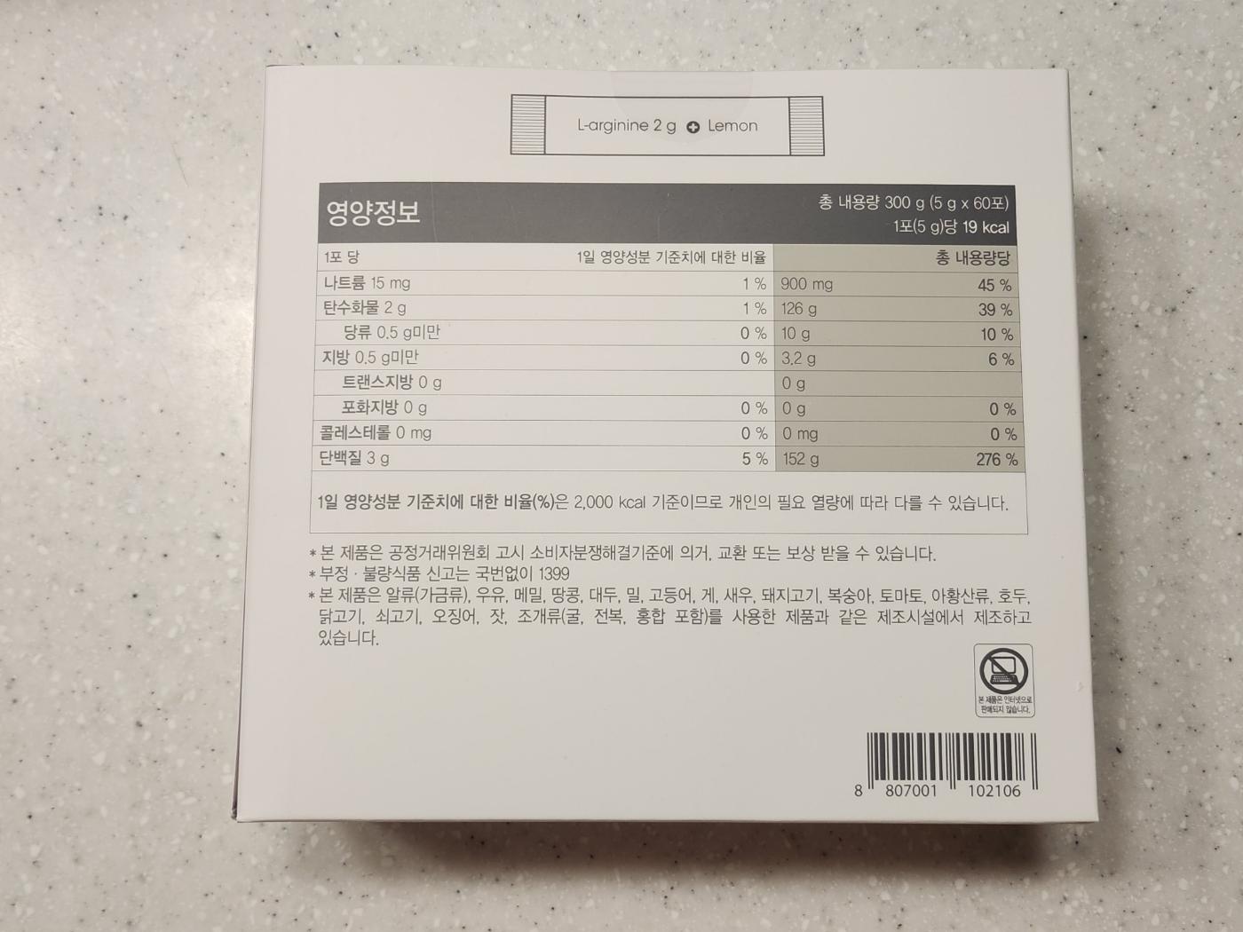 하루 한포만 공복에 섭취하라고 말씀해주신 아르지닌!