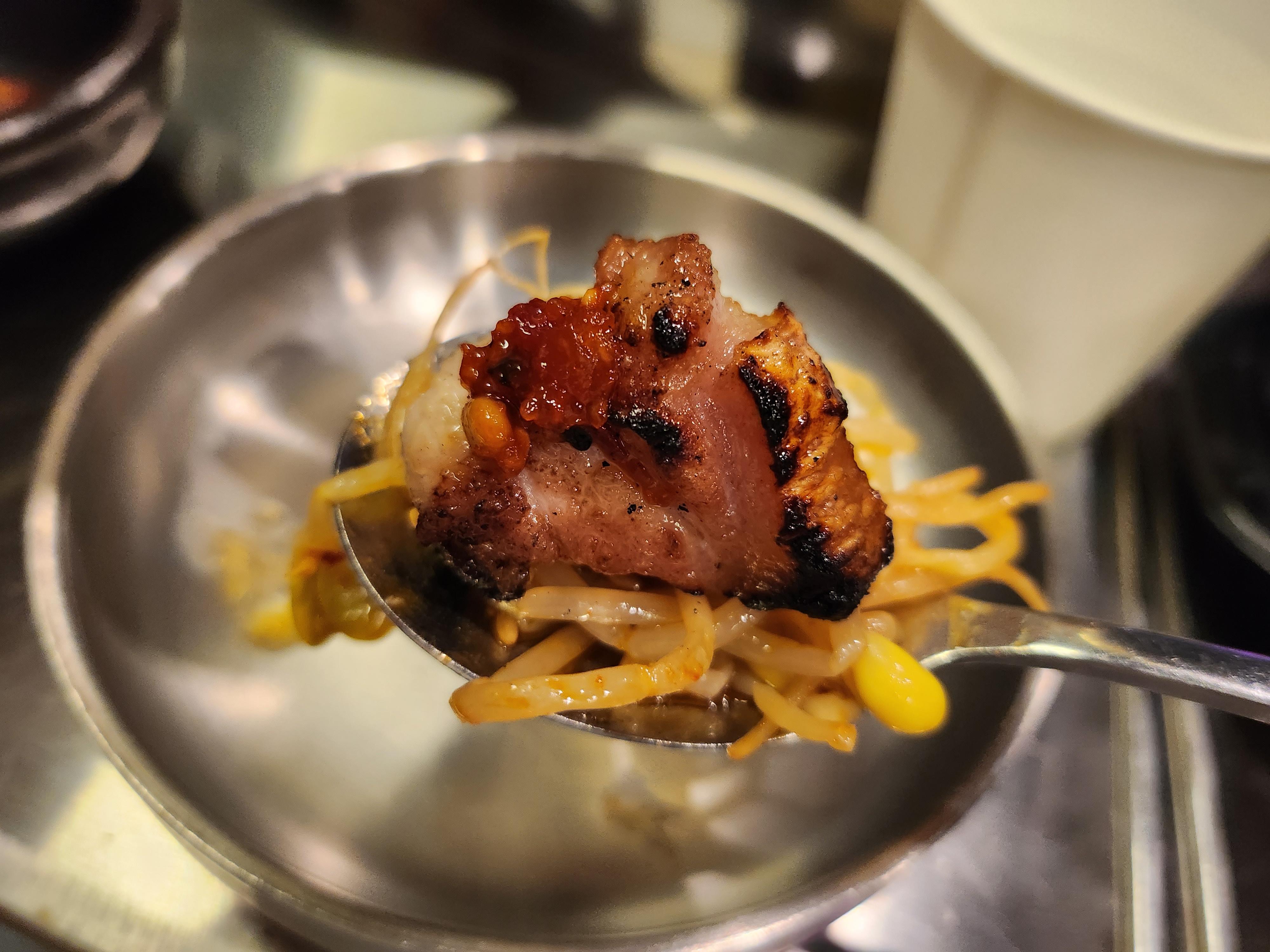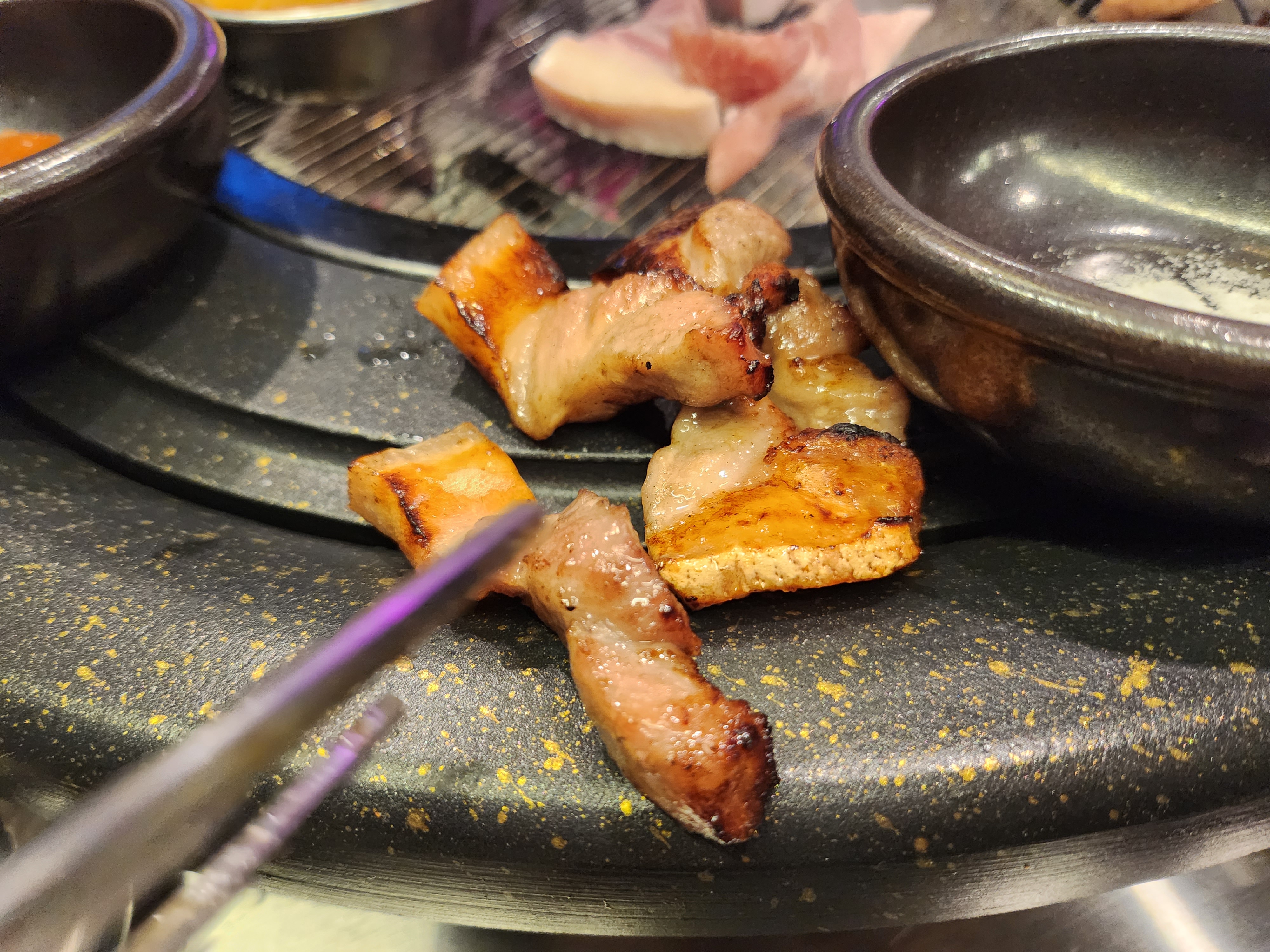 맛있게 잘 구워진 고기를 한점 냠!