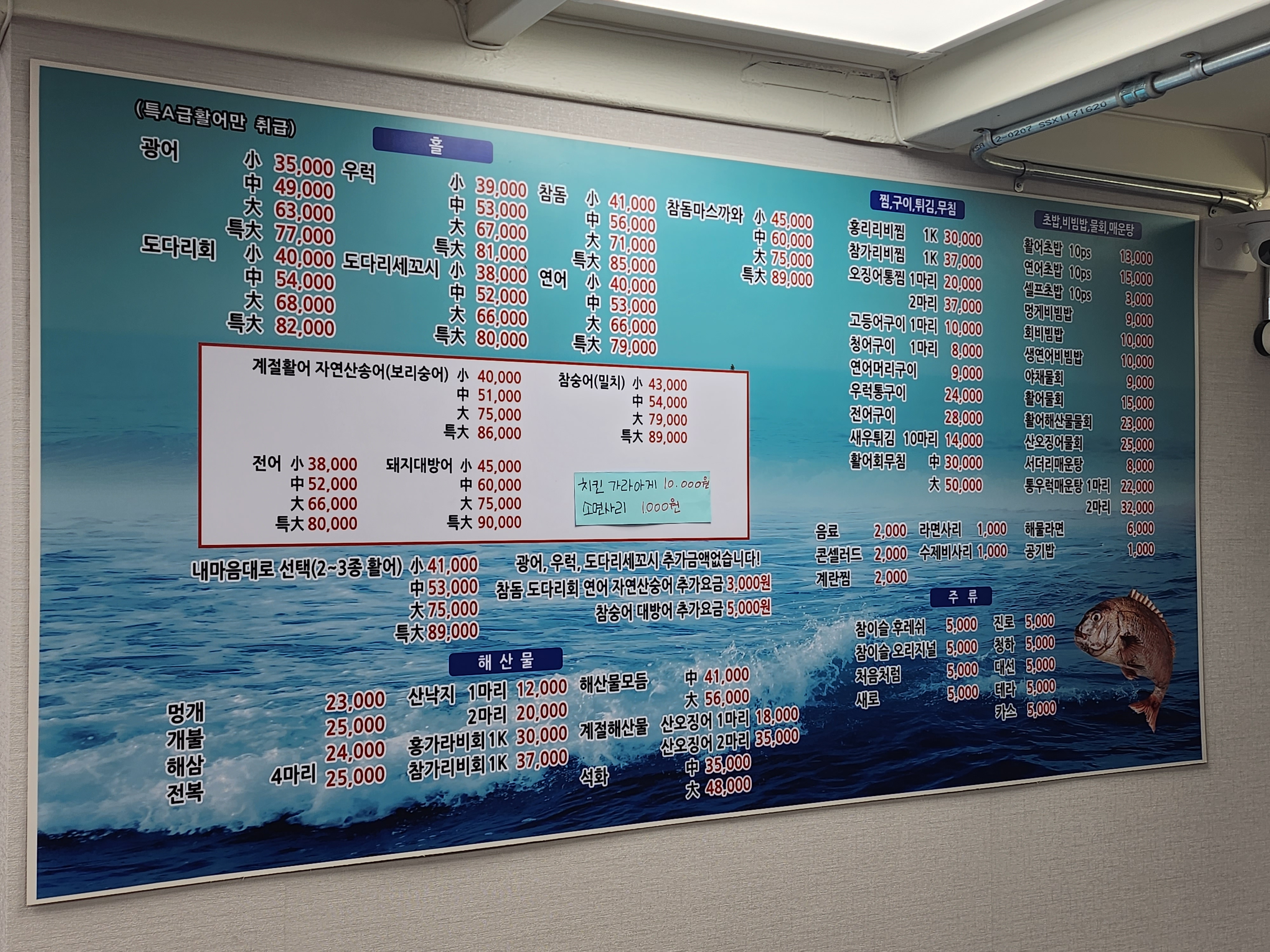 참돔과 도다리 회는 3,000원씩 추가요금이 있어서 6,000원이 추가됐다.ㅎㅎ