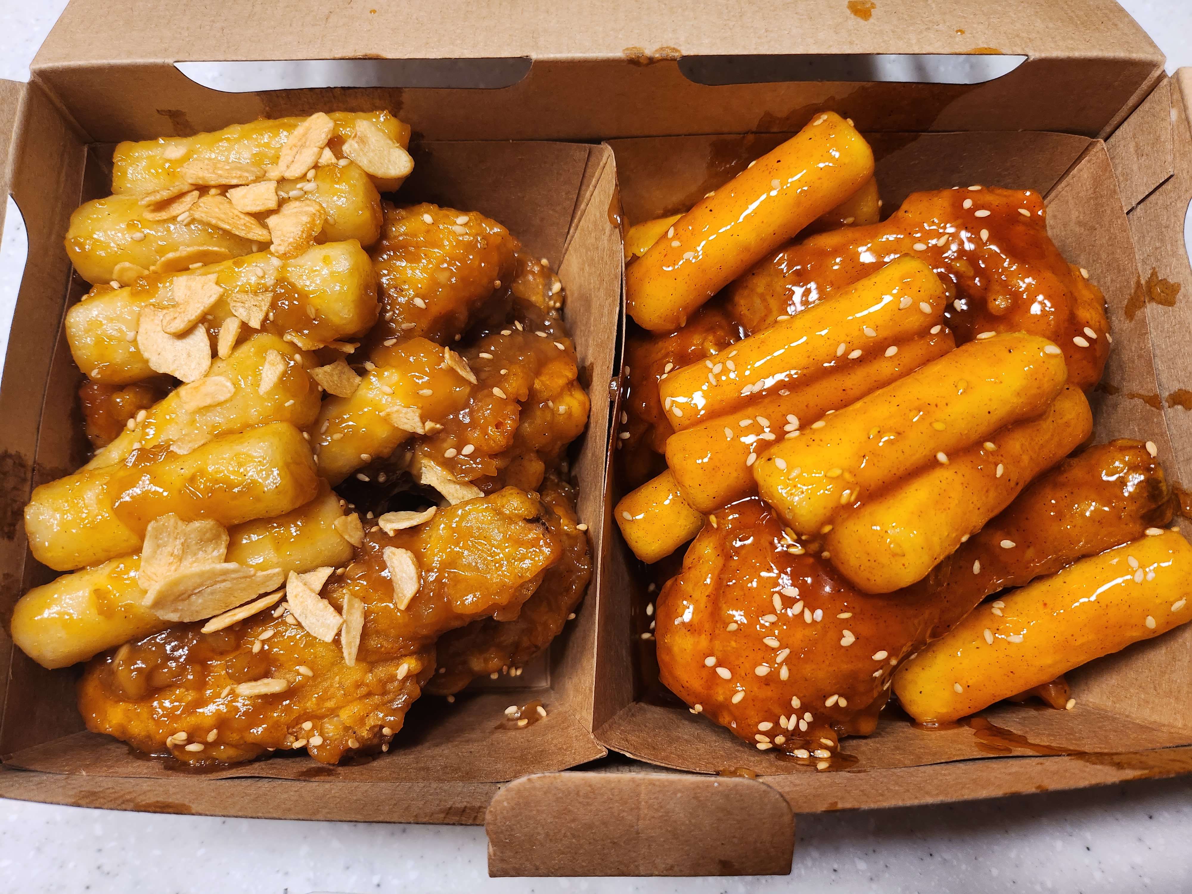 이번엔 마늘치킨반, 매운양념치킨 반을 주문했다.ㅎㅎ