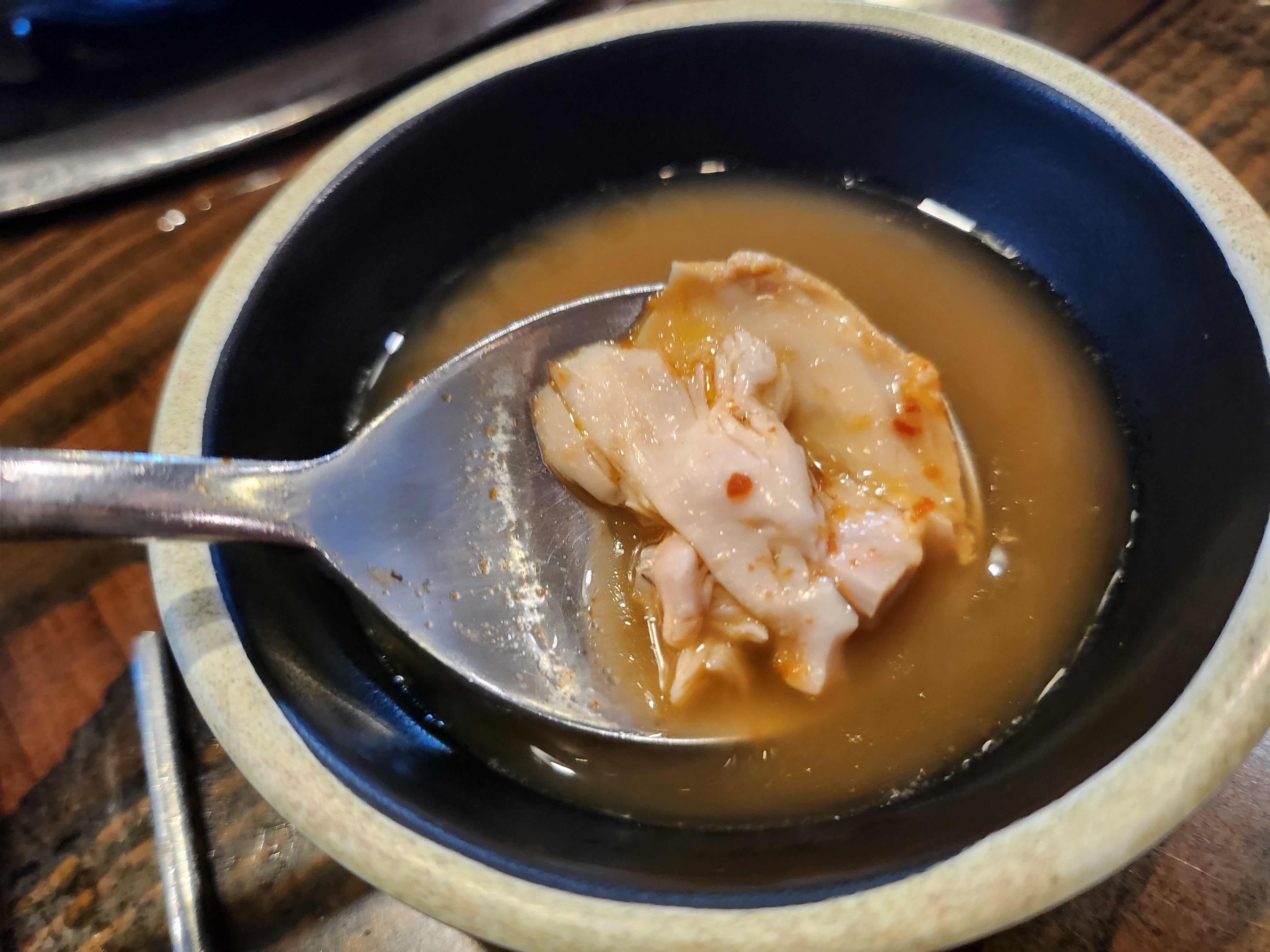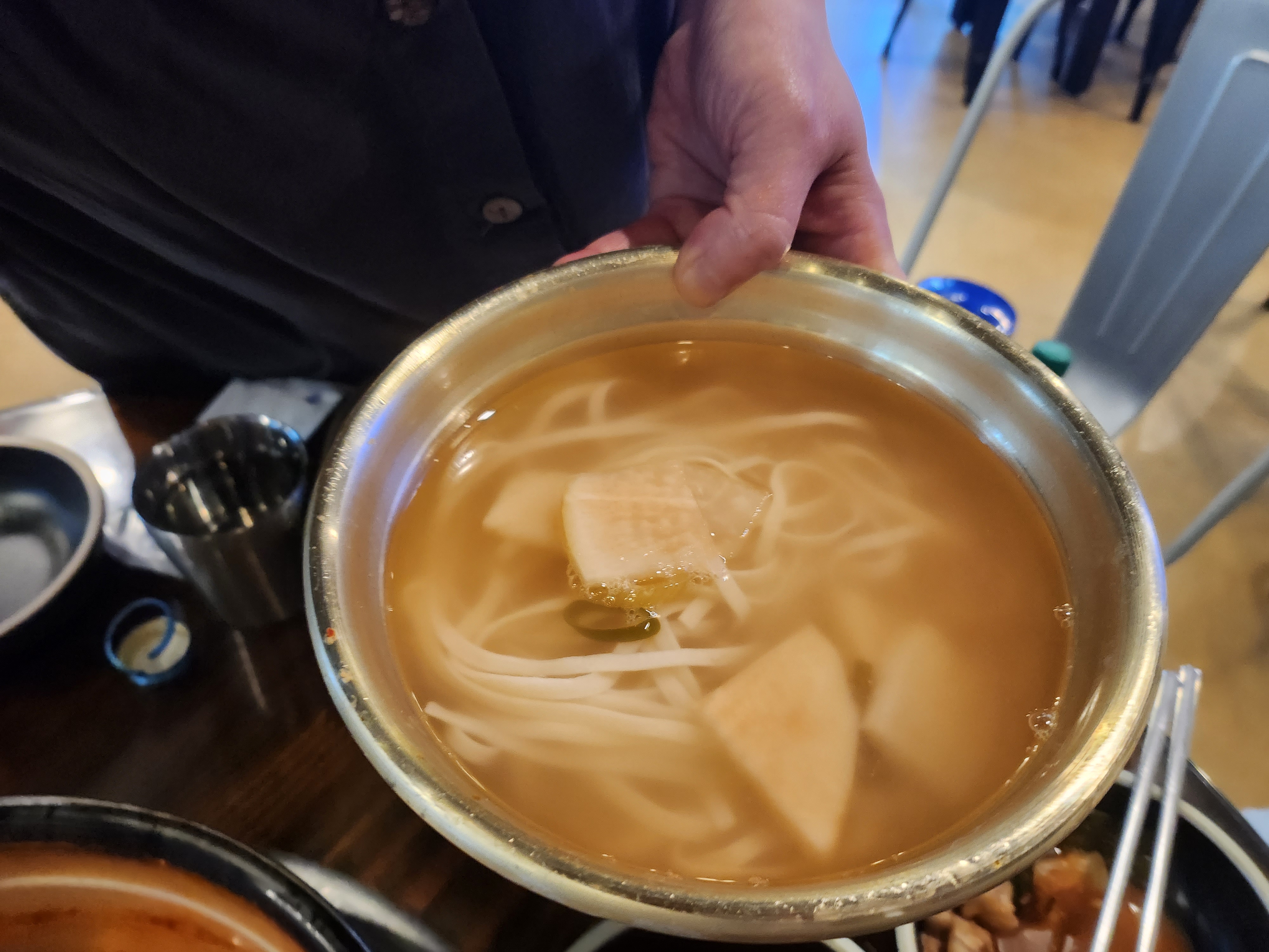 열심히 먹고 있으니 사장님이 오셔서 그릇에 국물을 덜어주셨다.