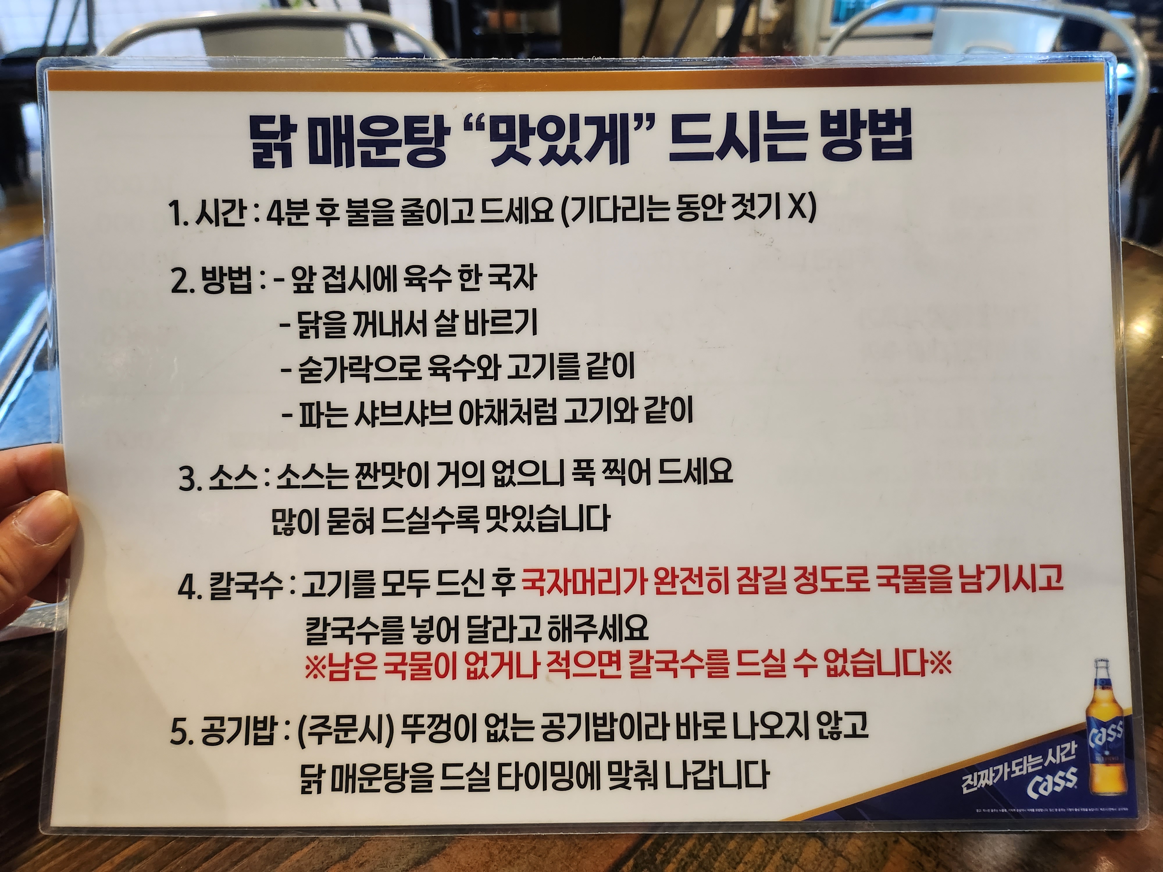 뒷면엔 닭매운탕 맛있게 드시는 방법이 적혀있는데