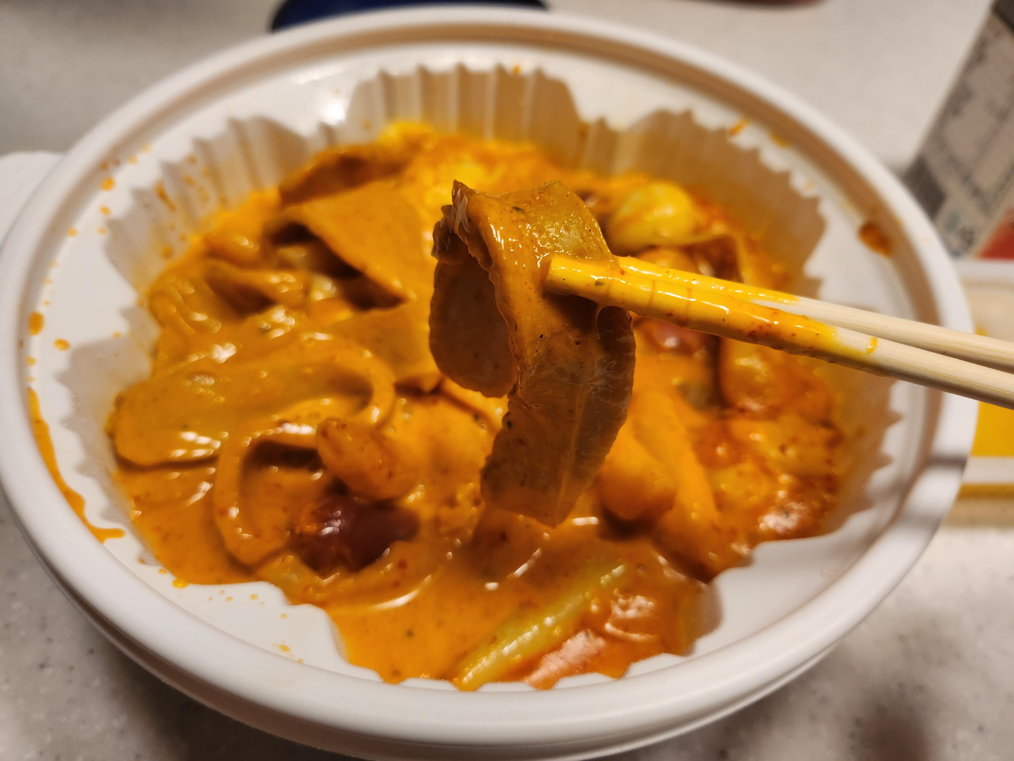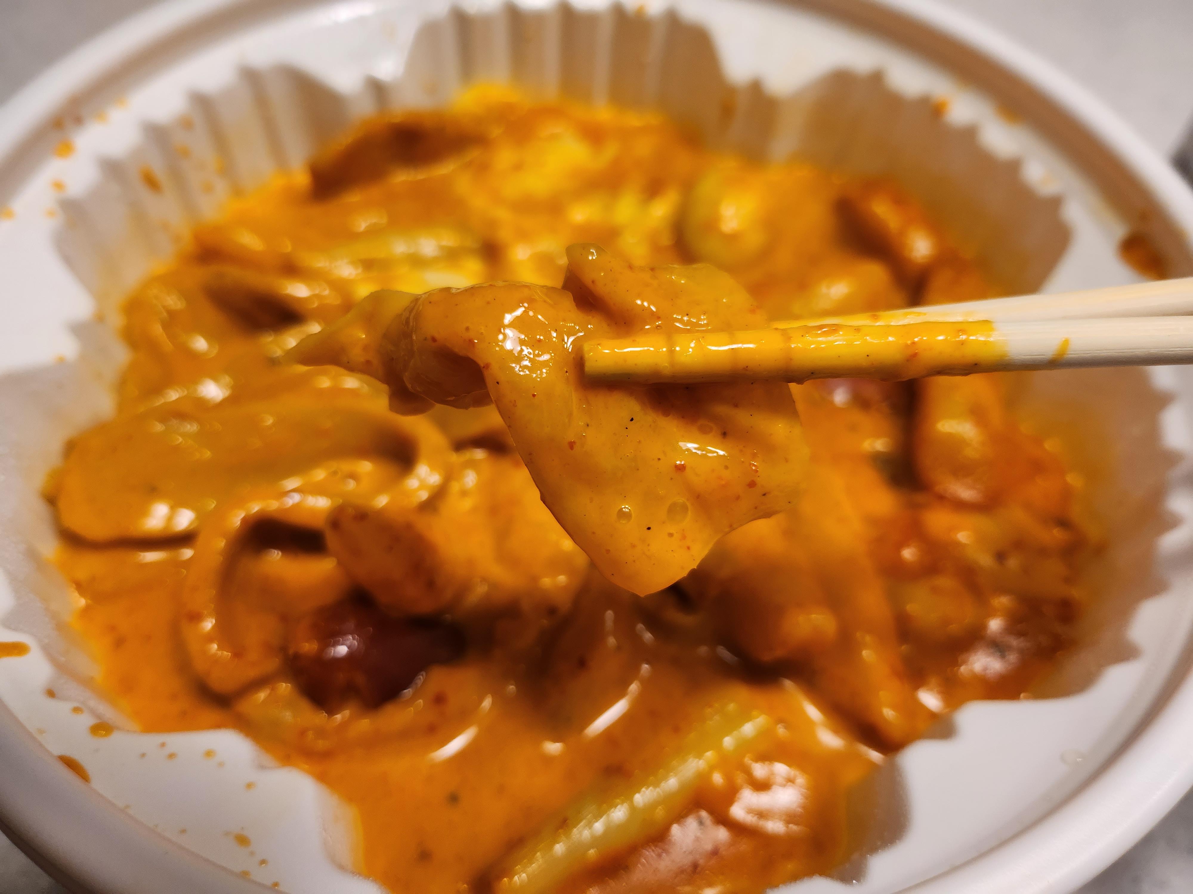 엽기떡볶이 오리지널맛은 바로 매운맛이 확 올라오는데 로제떡볶이는 크림이 들어가서 그런지 그렇게 맵지 않았다.ㅎㅎ